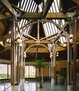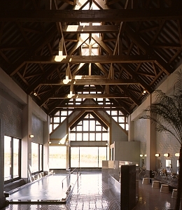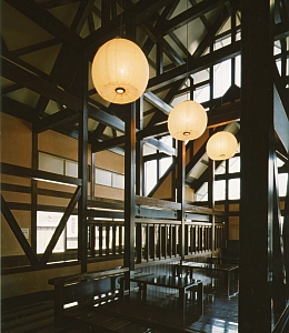 テルメ柏稜 所在地 山形県西村山郡大江町 構造 木造・RC造・S造 規模 地上1階/地下1階 竣工年月 1995.12 敷地面積 32,131㎡ 建築面積 1,148+905㎡ 延床面積 1,156+808㎡ テルメ柏稜 ・大江町健康温泉館 ・大江町勤労者総合福祉センター 「サンワーク大江」