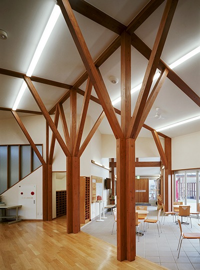 山形市楯山コミュニティセンター たてやまなかま館 所在地 山形県山形市 構造 木造 規模 地上2階 竣工 2014年 敷地面積 2,732.97㎡ 建築面積 931.12㎡ 延床面積 1,076.93㎡