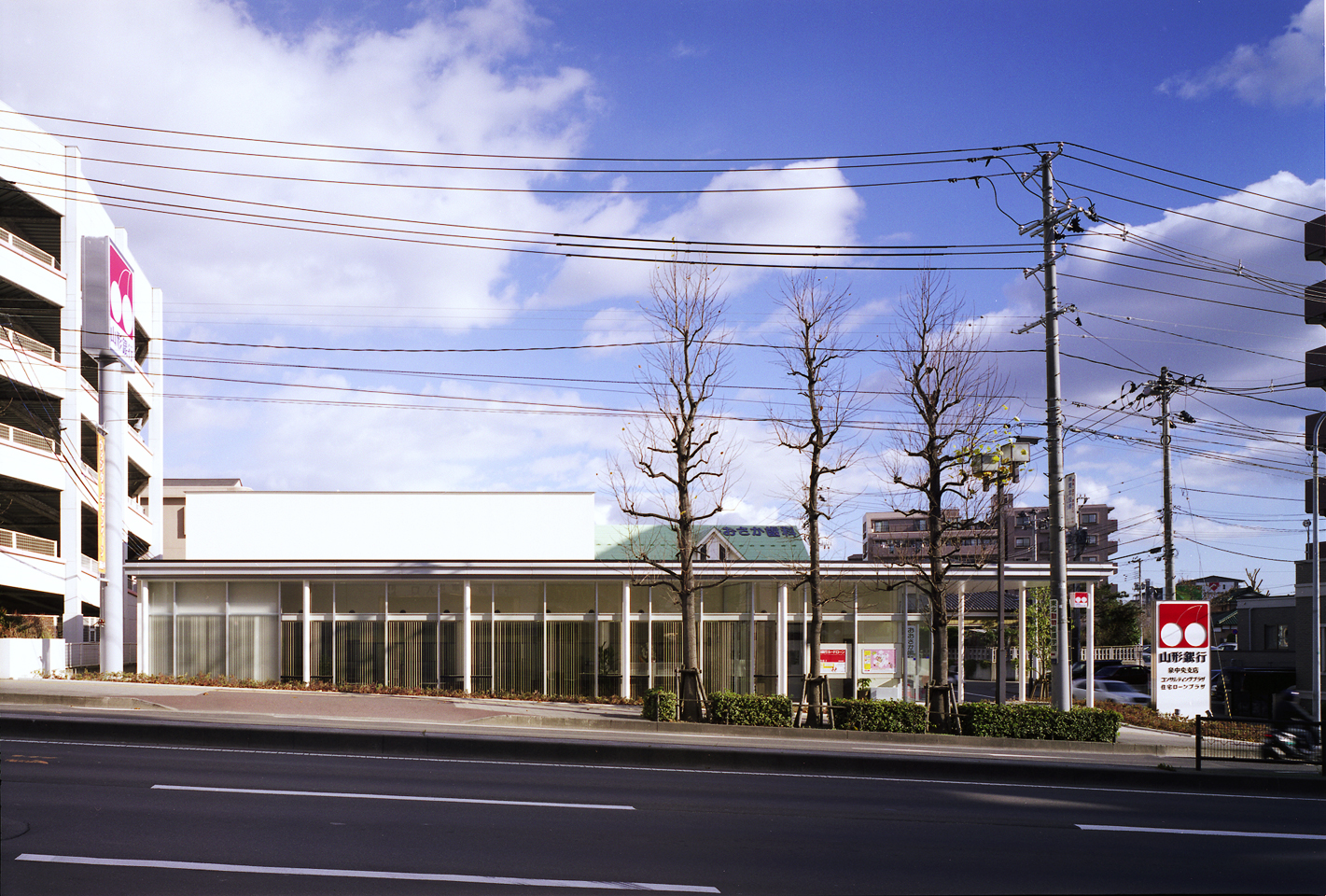 山形銀行泉中央支店 建物名 山形銀行泉中央支店 所在地 宮城県仙台市 竣工年月 1998年10月 主体構造 鉄骨造 規模 地上2階建 敷地面積 1025.71㎡ 延床面積 498.69㎡ 建築面積 414.01㎡