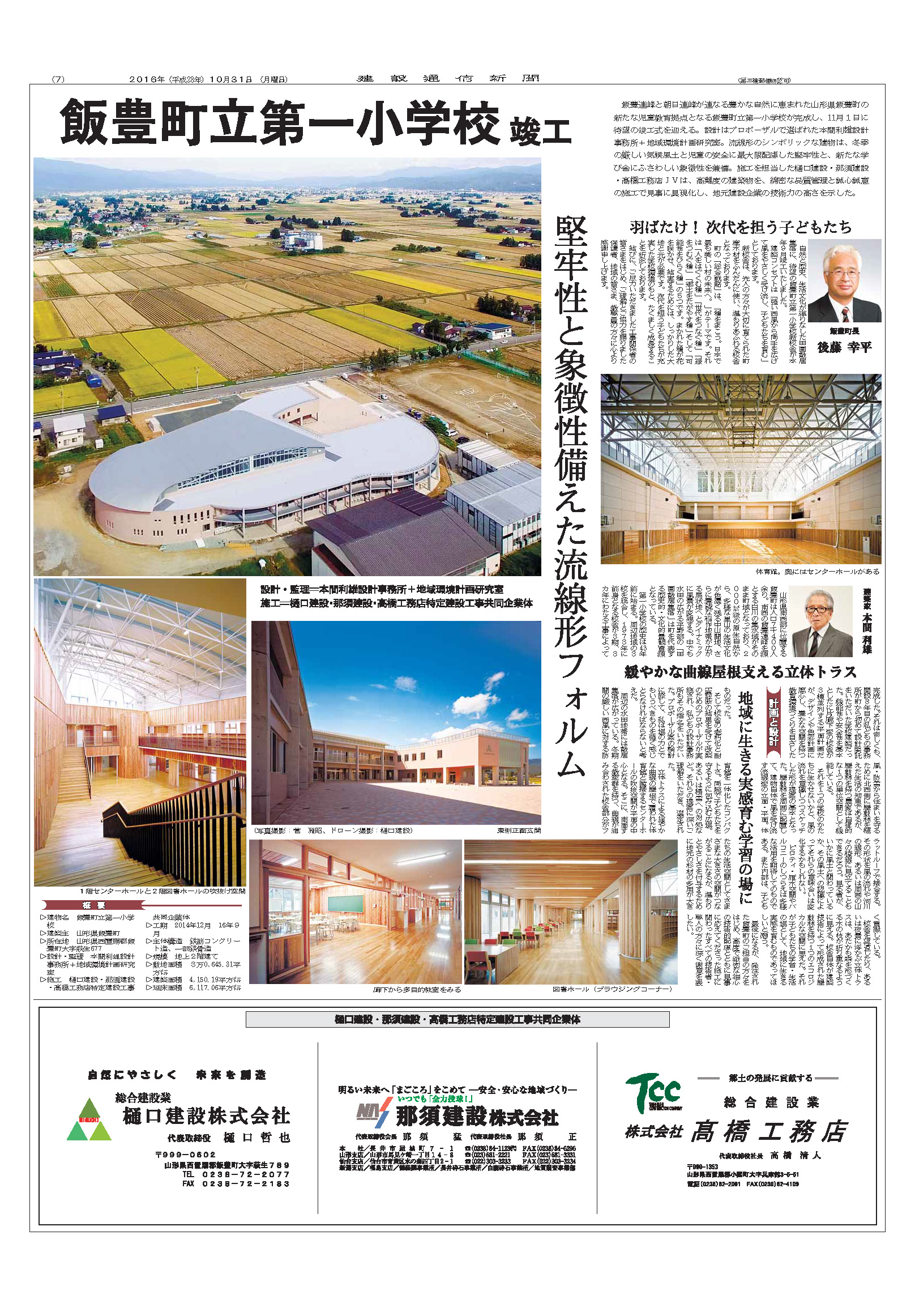 10月31日建設通信新聞に飯豊第一小学校が掲載されました